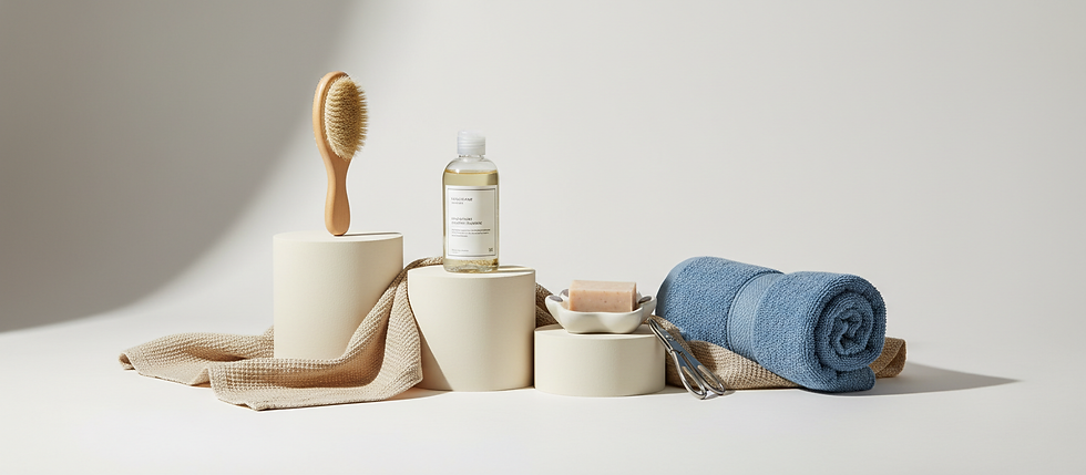 Acessórios de higiene e cuidado, essenciais para manter a saúde e o conforto dos animais de estimação.